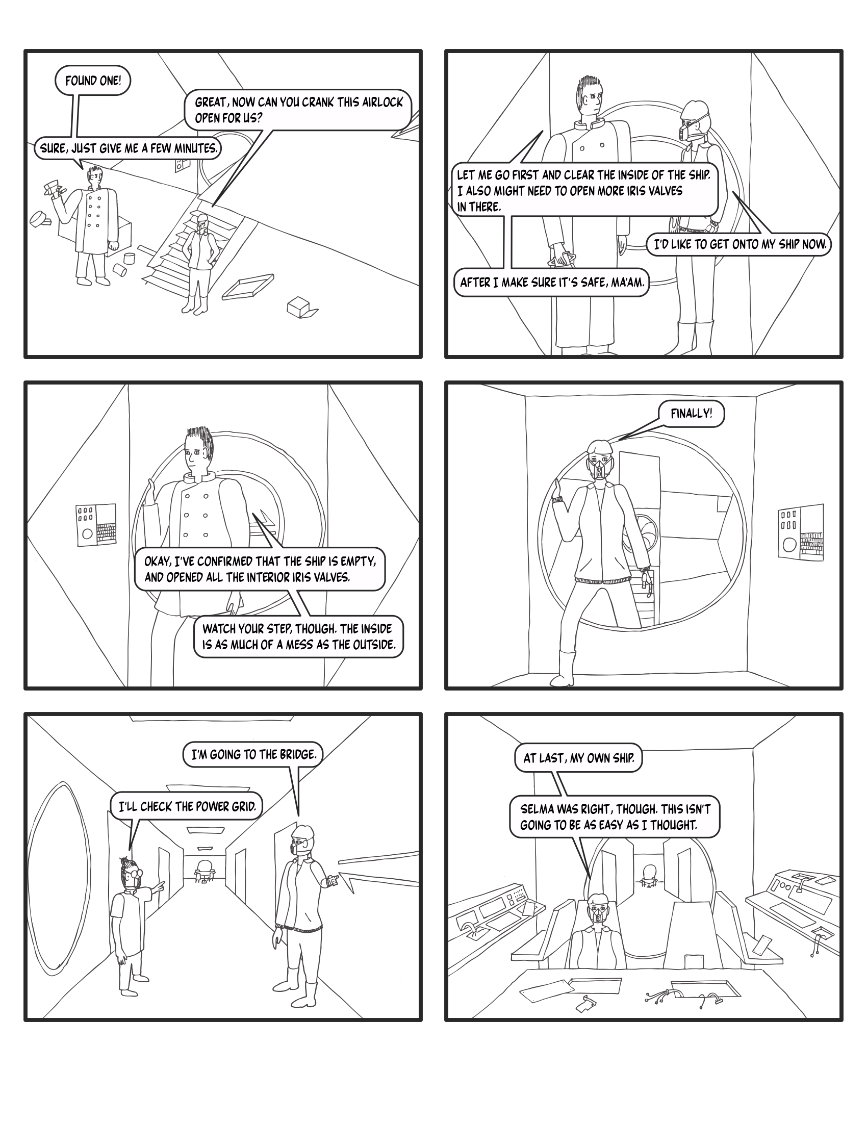 At long last, Abigail has finally set foot on her ship. I wonder how many pages it’ll take the crew to get this thing flightworthy.